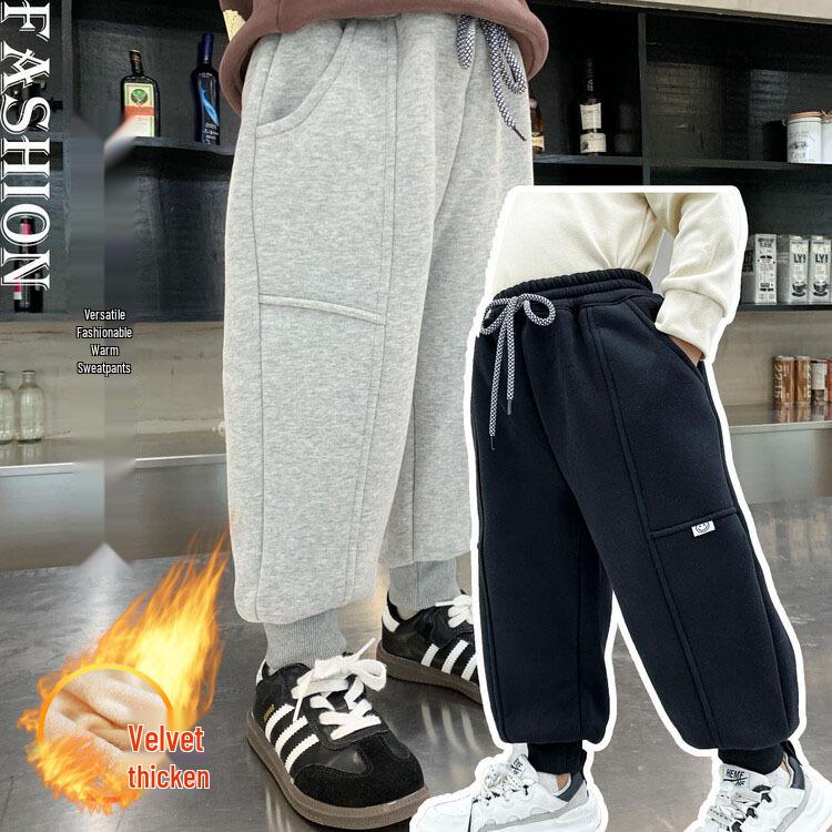 Boy's Fleece-Lined One-Piece Casual Warm Sweatpants for Fall & Winter - Stylish and Thickened Sports Pants