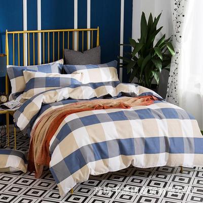 4 Piece, 100% Cotton Bedding Set, 4 Piece Bed Sheet Comforter Set, Simple Striped Check Couple Bed Quilt Set