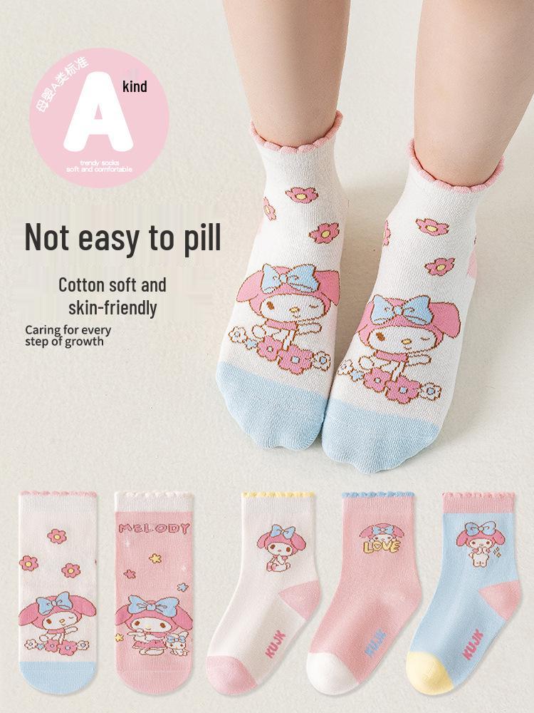 My Melody Girls' Cute Cartoon Mid-Calf Cotton Socks - Thin for Autumn & Winter