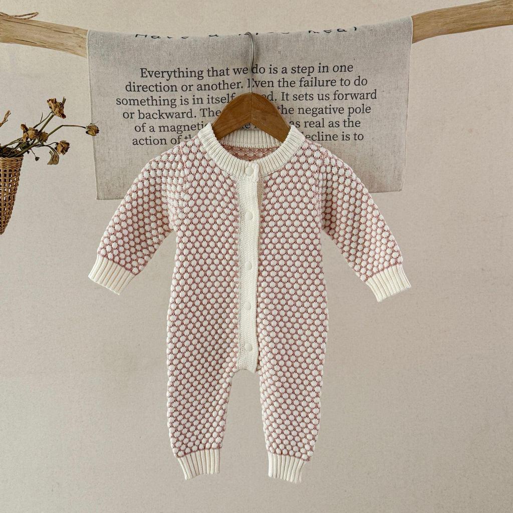 Spring & Autumn Korean-Style Baby Girl Romper with Two-Color 3D Bubble Ball Design