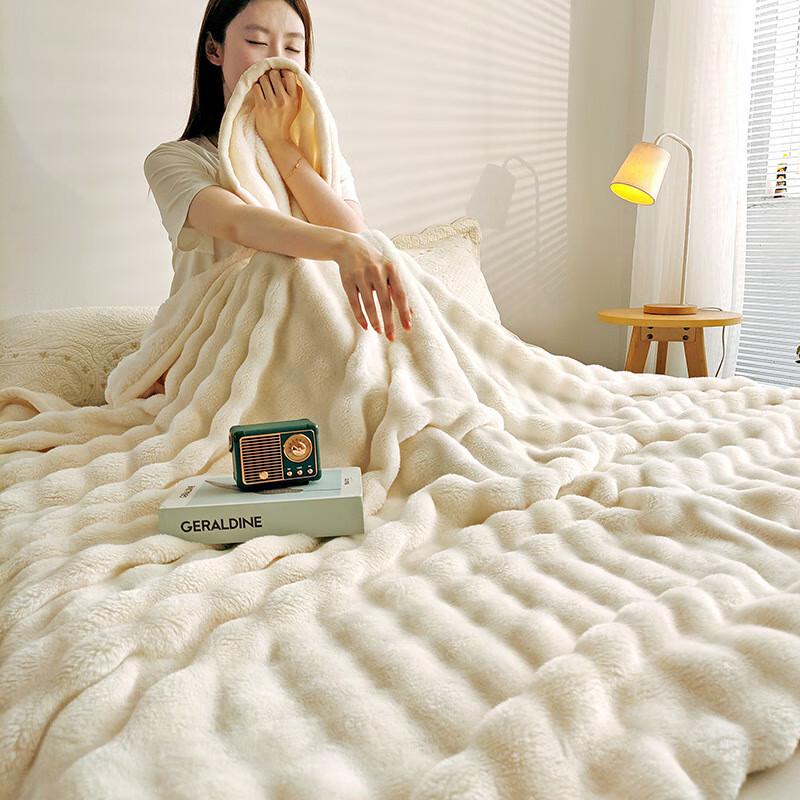LISM Luxury Faux Rabbit Fur Throw Blanket