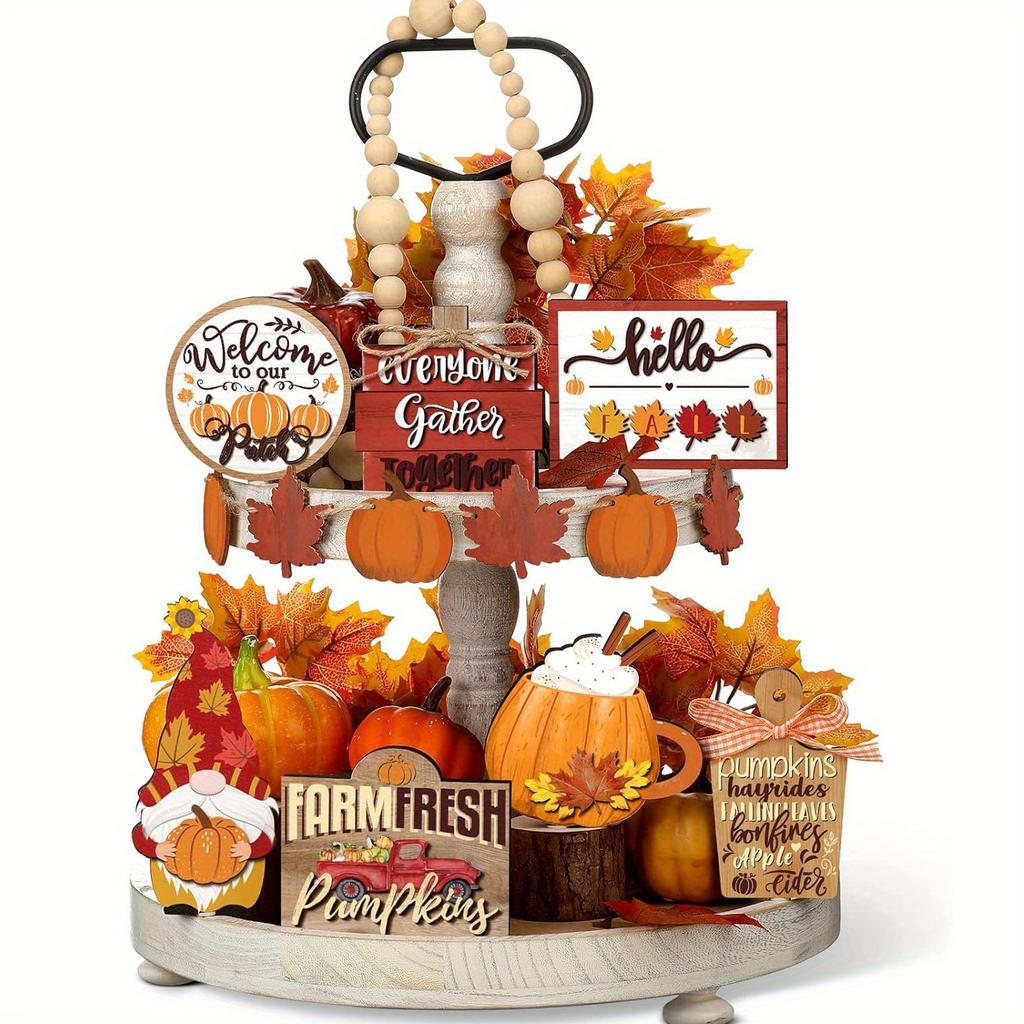 15pcs Thanksgiving Wooden Pumpkin & Maple Leaf Decor Set, Fall Harvest Signs for Wedding, Birthday & Holiday Party Decor