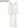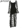 BITCED Autumn Women's Solid-Colour High-Waisted Fashion Square-Neck Long-Sleeved Lace-Panel Dress