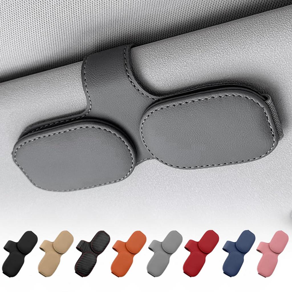 LEZARINO Eyeglass Holder, For Cars, Sunglasses Clip, Sun Visor Attachment, Leather Style, Card Storage (Gray)