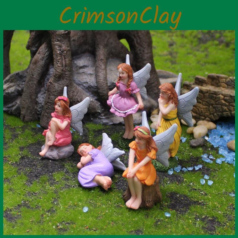 This resin figurine set features five garden-themed fairy characters in various poses, including sitting on stones and tree stumps or lying down, crafted with detailed artistry.Ideal for decorating gardens, windowsills, or indoor displays during celebrations or as thoughtful gifts. Wipe clean with a damp cloth to maintain its vibrant appearance.