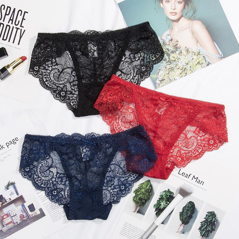 Low-Waist Seamless Lace Women's Triangle Panties with Breathable Pure Cotton Antibacterial Crotch