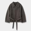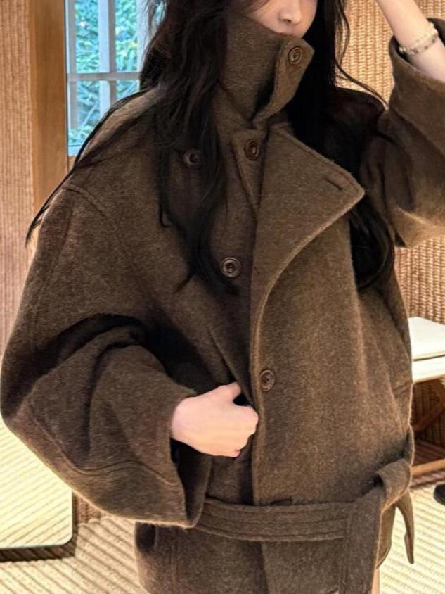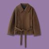 Retro Camel-Hair Short Wool Coat with Belt