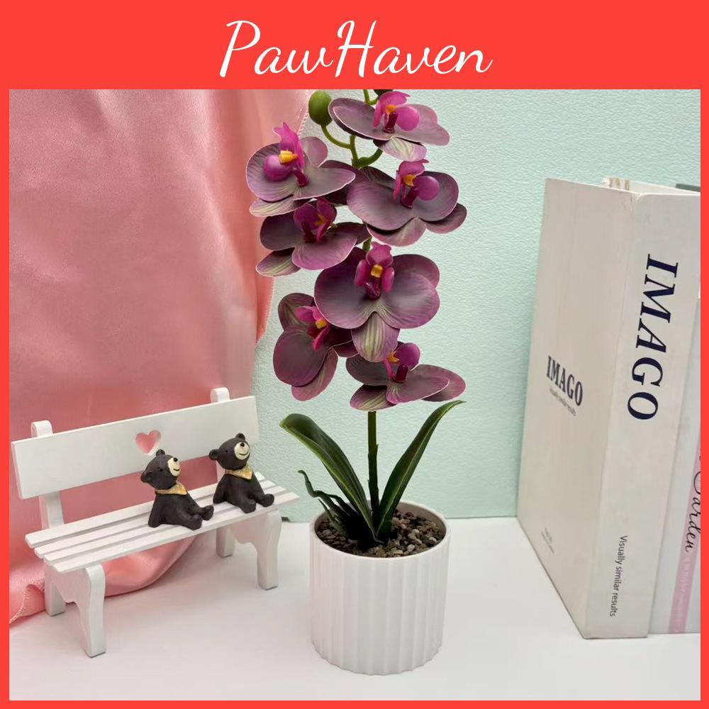 This artificial butterfly orchid bonsai features a 7-flower design crafted from durable materials,Its vibrant purple, white, orange, and green hues add a natural touch. Ideal for home decor, wedding arrangements, outdoor displays, or photography props. Wipe with a damp cloth for maintenance.