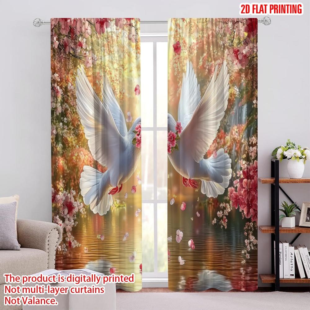 2pcs,2D Plane Printing Print Curtains Petal Kiss Flight 100% Polyester (without Rod) Festive Use for Bedroom, Living Room, Study
