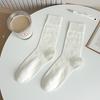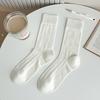 Women's Japanese Style Breathable Pure Cotton Long Socks - Milky White, Soft Pile, Versatile for Spring and Autumn.
