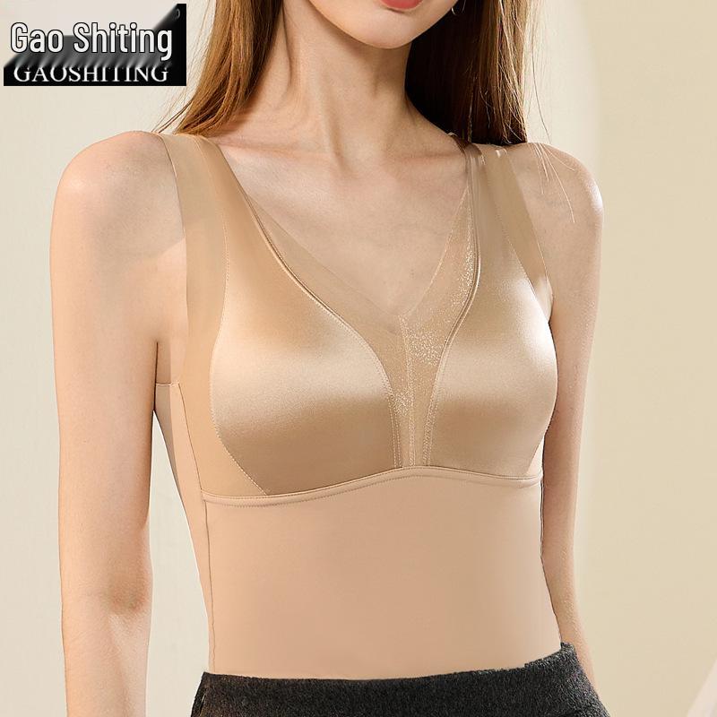 Women's Seamless Silk Lace Vest with Built-in Bra - Plus Velvet, Brushed for Warmth - Perfect for Autumn and Winter