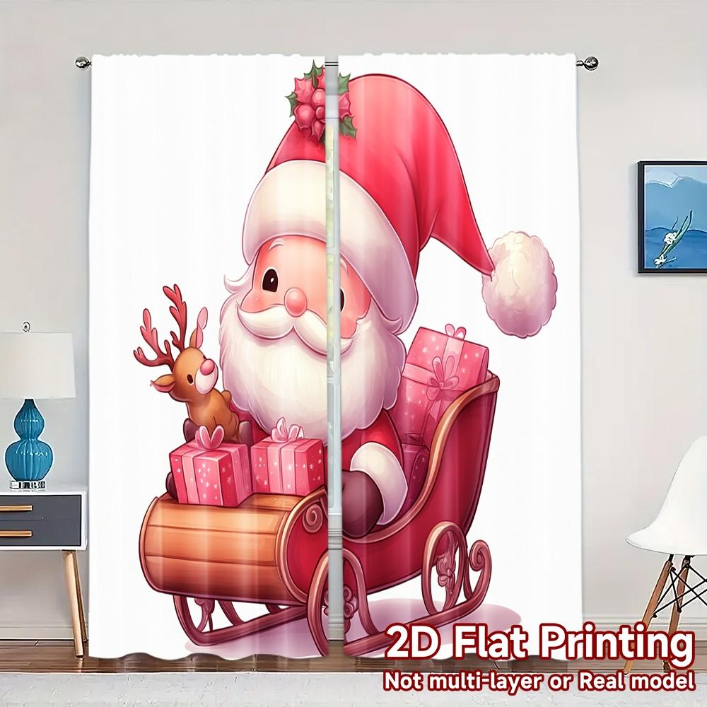 2pcs,Curtains Cute Pink Gnome Reindeer Sleigh Gifts (2) Popular Window Curtain Versatile Polyester Fabric Curtains Decorations