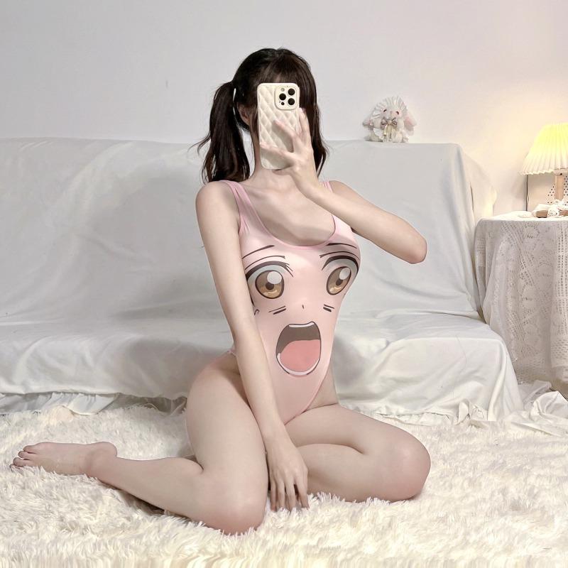 Sexy Fairy Pink Onesie Anime Loli Cosplay Swimsuit Cute Print Seduction High Fork