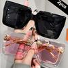 2pcs Luxury Oversized Fashion Sunglasses for Women - Large Square Frame with Anti-Glare Lenses, Golden & Rose Golden Accents