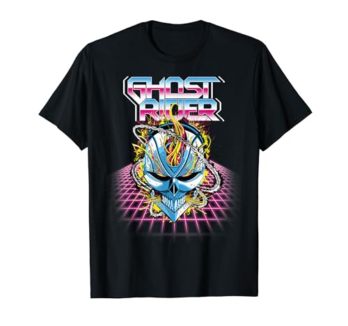 Marvel Ghost Rider Super 80s Retro Neon Grid Graphic T-Shirt
