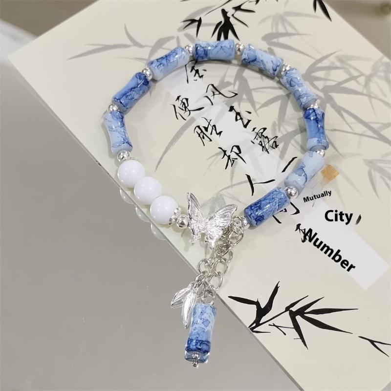 2Pcs Chinese Ancient Style Butterfly Bamboo Sweet Versatile Couple Bracelet Exquisite Popular Jewelry Accessory Gift