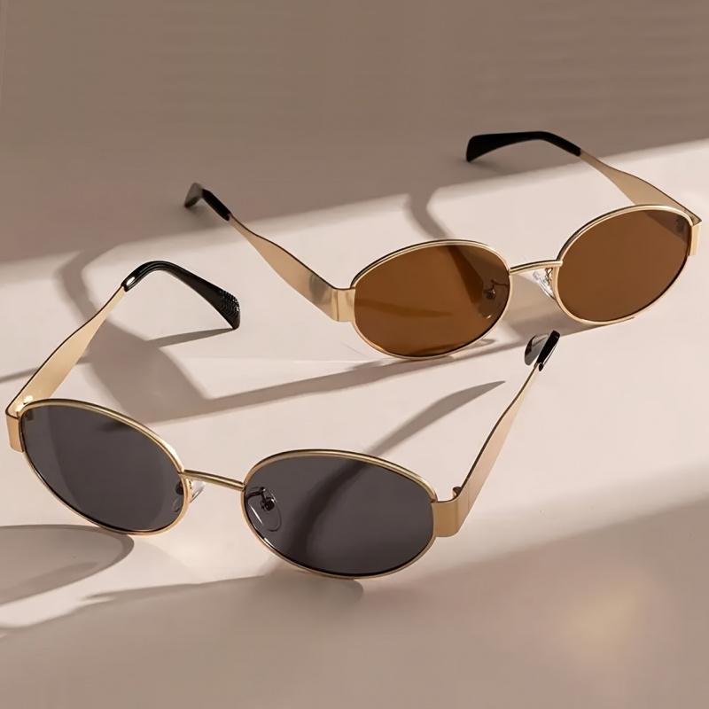 2 Pairs Fashionable and Trendy Eyewear Set, Retro Oval Metal Frame Travel Glasses Suitable for Both Men and Women