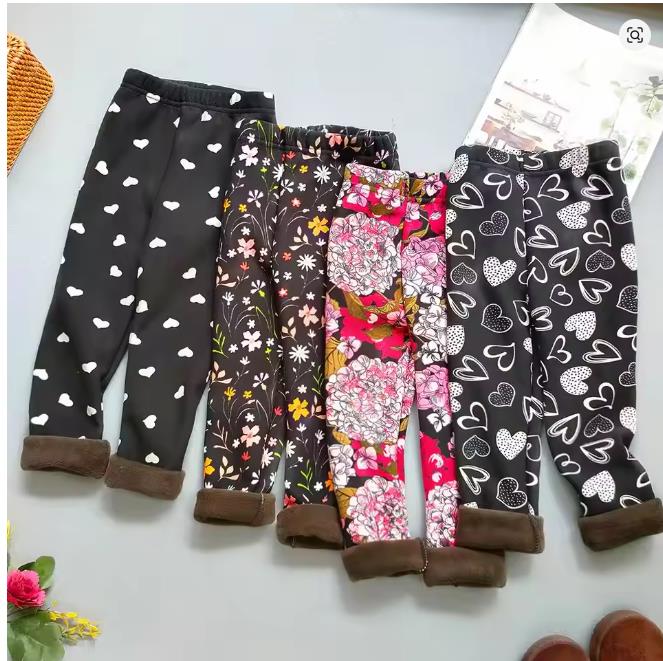 Autumn Winter Print Flowers Thick Warm Kids Toddler Baby Girls Leggings Children's Pants
