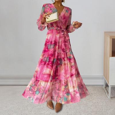 Spring Summer Women's Casual Print V-Neck Long Sleeve Dress Women's Elegant Long Skirt