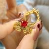 Vintage Princess Style Imitation Emerald Square Red Corundum Ring Women'S Light Luxury Lace Spinel Blue Diamond Ring