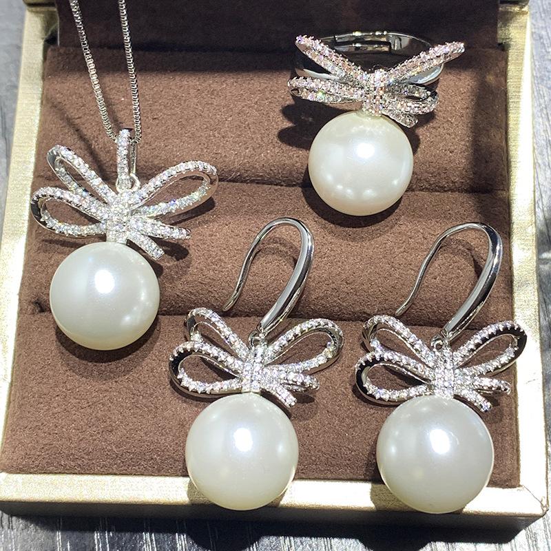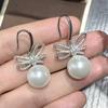 Jewelry Copper Bottom Gold-Plated Inlaid White Bead Bow Diamond-Set Female 14Mm
