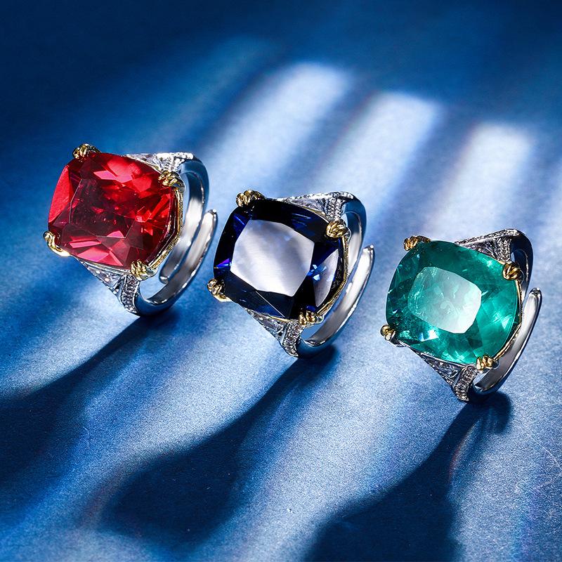 Jewelry Copper Bottom Gold-Plated Simulation Color Treasure Corundum Fat Rectangular Square, Including Ring Female 14 * 16