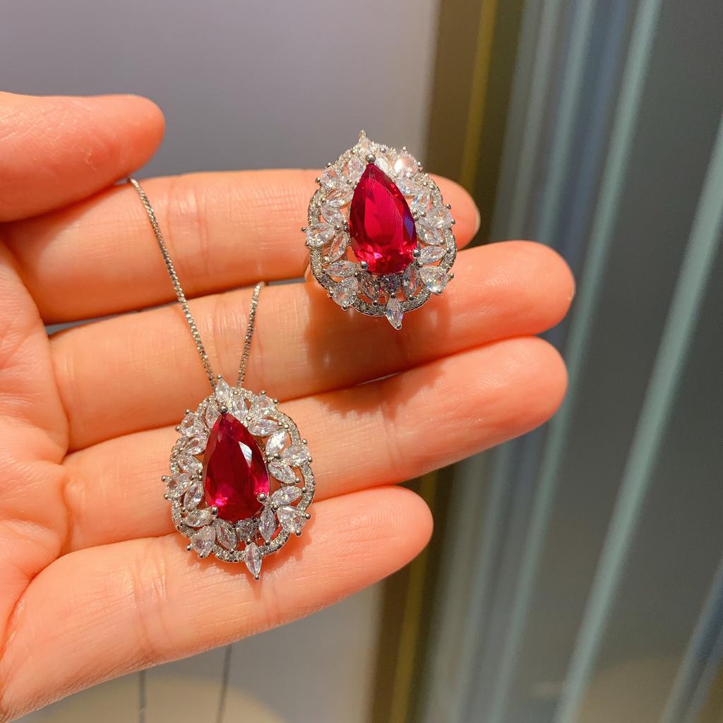 Jewelry Supply Jewelry Set Simulation Red Corundum Pendant 8 * 14 Ring 8 * 14