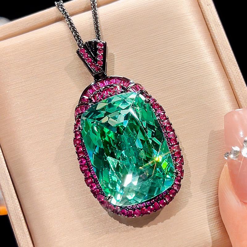 Jewelry Copper Bottom Gold-Plated Simulation Para Green Black Gold Personalized Pendant Necklace Main Stone 20 * 28