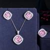 Simple Three-Piece Set Of Micro-Inlaid Zircon Square Earrings, Pendant, Ring Set Chain.