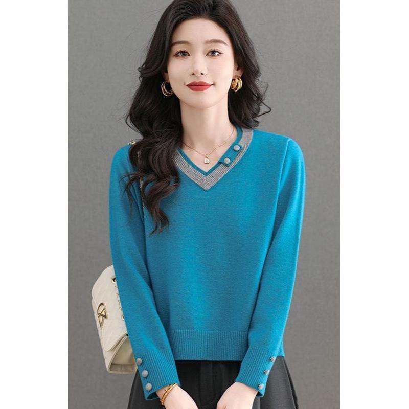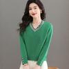 Sweater Women's Color-blocking Short Fashionable V-neck Base Shirt Top