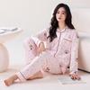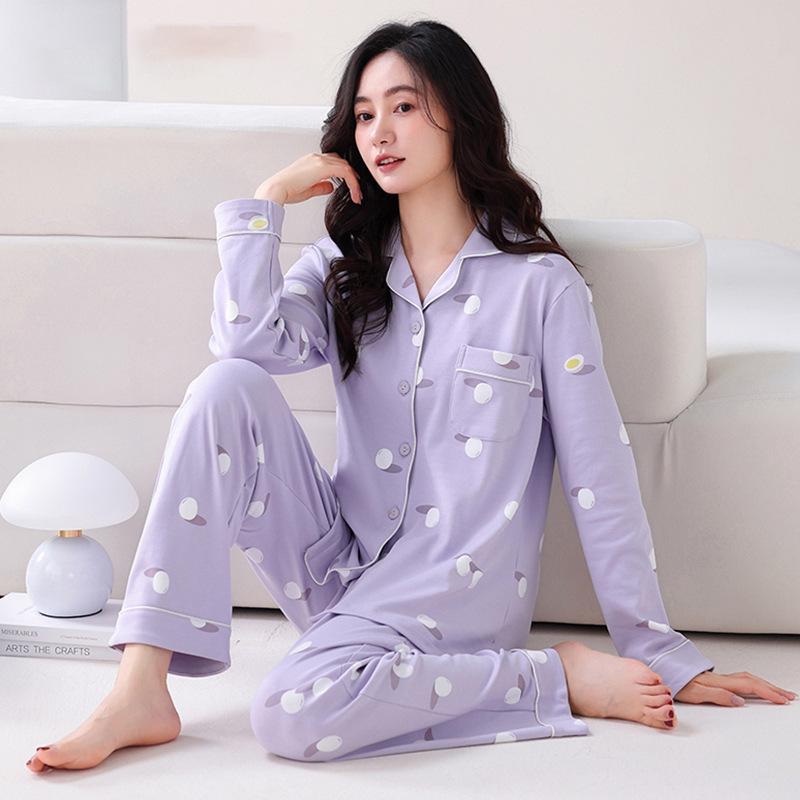 Experience ultimate comfort and style with this Women's Long Sleeve Lapel Cardigan Pajama Set, crafted from pure cotton for a soft and breathable wear. The long sleeves and lapel design offer a classic and polished look, while the cotton material provides a cozy feel, perfect for lounging at home. Versatile enough to be worn outside, this set combines casual home wear with a touch of elegance, making it an ideal choice for both indoor relaxation and casual outings.