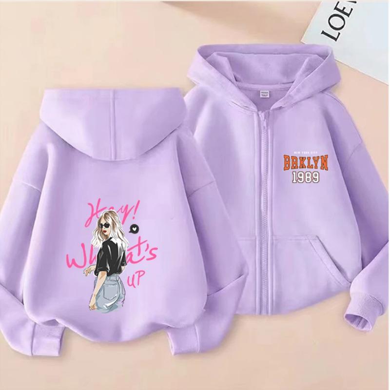 2025 New Autumn/Winter Zipper Children's Hoodie, Fashionable and Versatile Cartoon Printed Girls' Hoodie