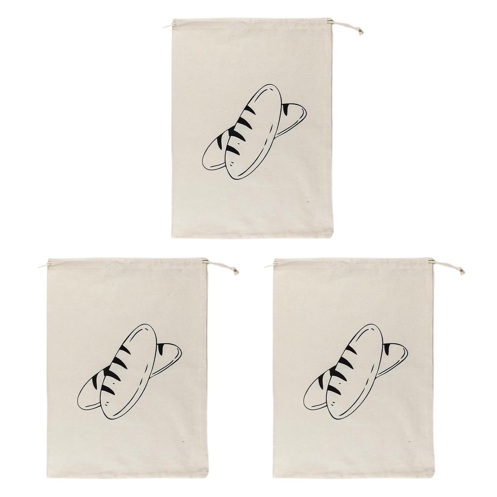 Set Of 3 Practical Linen Bread Bags Reusable And Washable Pockets With Drawstring For Bread And Produce Storage