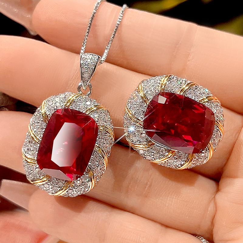 Jewelry Copper Bottom Gold-Plated Simulation Bird Red Corundum Temperament Jewelry Set Female 12 * 16