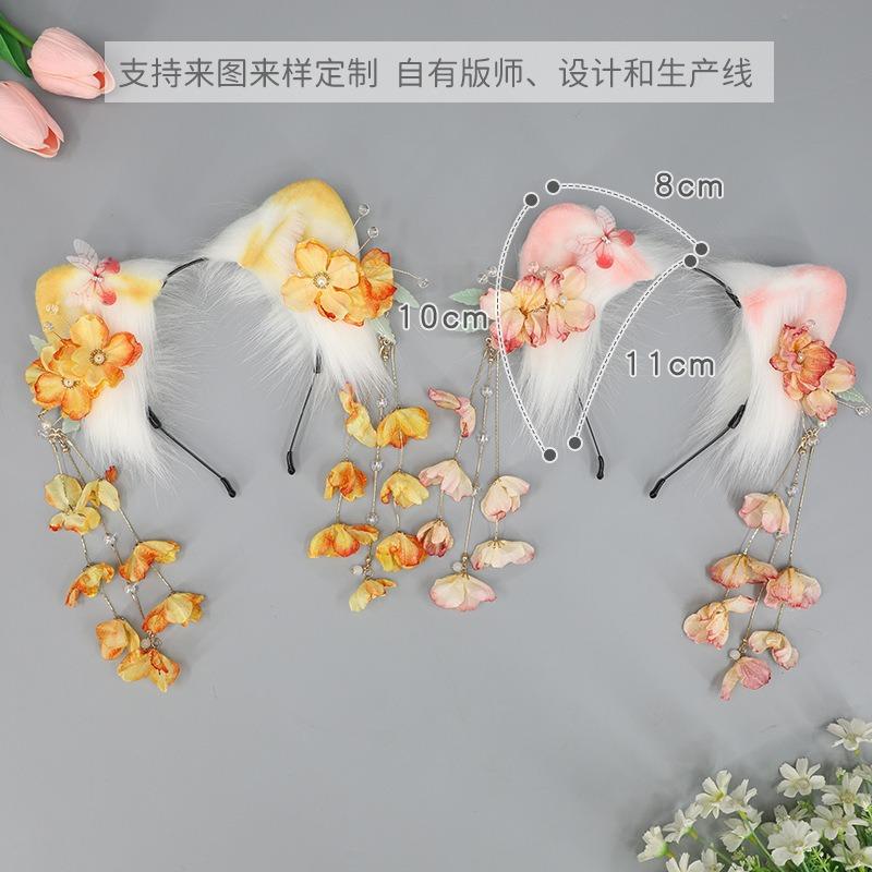 Chinese Niang Fringed Cat Ear Headband Olita Hanfu Animal Ear Cos Accessories Antique Cat Ears Cat Tail Set