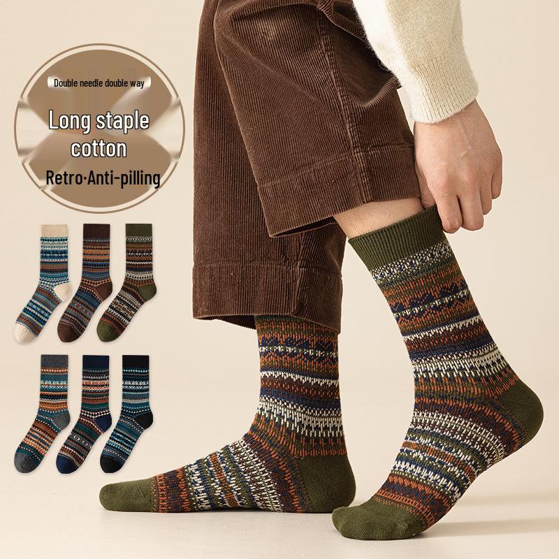 Men's Argyle Mid-Tube Socks - Autumn/Winter, Color-Blocking Retro Ethnic Style