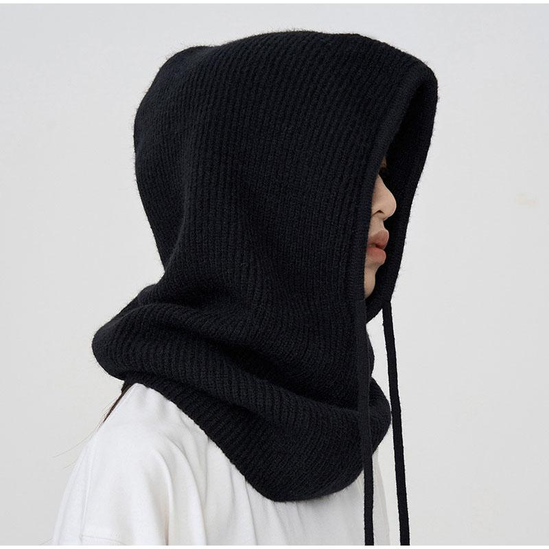 Ear Protection Hat One-piece Ladies Solid Color Knitted Warm Hat Multi-color Optional Hooded Scarf Autumn and Winter New Hat