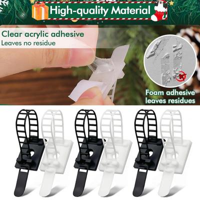 24/48Pcs Christmas Garland Hanger Adjustable Garland Hooks Ties Christmas Stocking Holder Reusable Adhesive Straps for Fireplace Window Decor