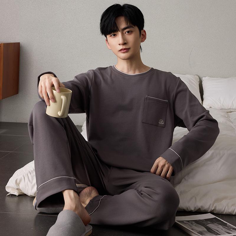 Men's Korean Style Cotton Pajamas Set - Autumn, Long Sleeve, Casual, Loose Fit