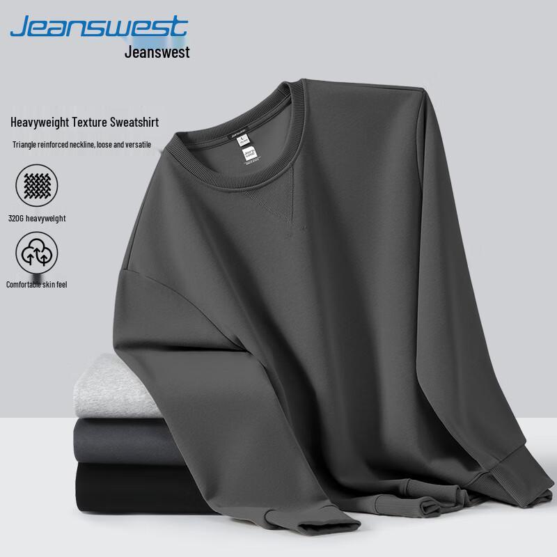 Jeanswest Men's Heavyweight Solid Color Crewneck Sweatshirt