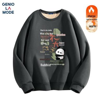 GENIOLAMODE Men's Plush Lined Printed Crewneck Sweatshirt