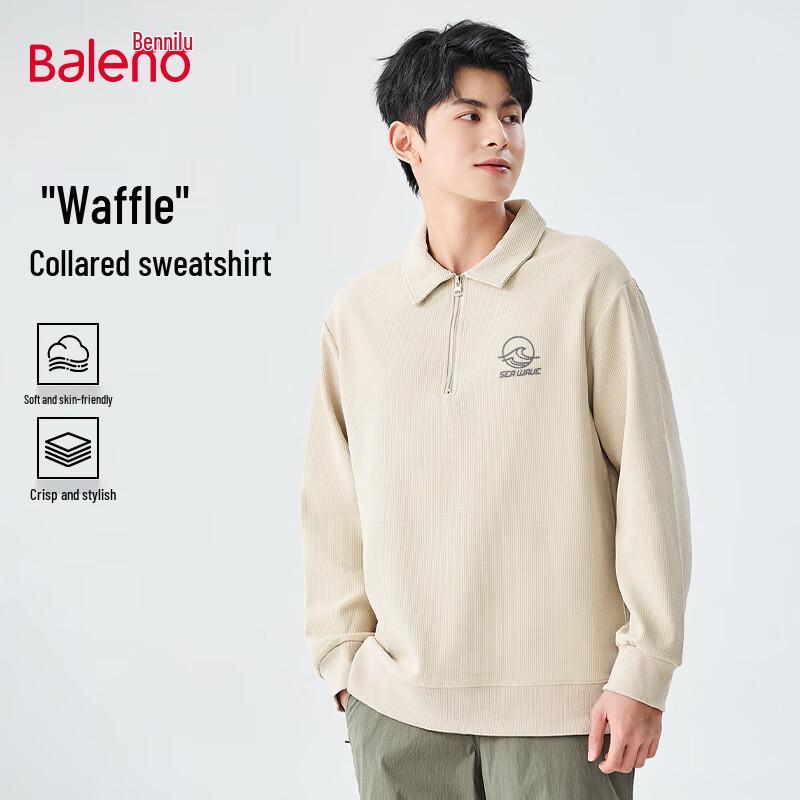 Baleno Men's Half-Zip Waffle Knit Turn-Down Collar Sweatshirt