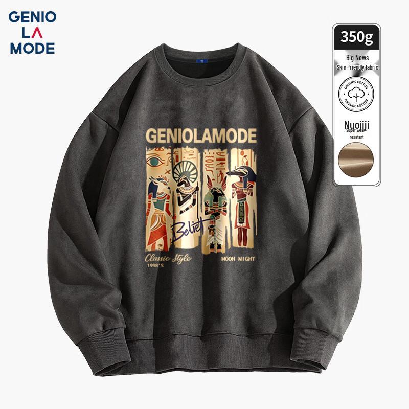 GENIOLAMODE Men's Suede Velvet Loose Round Neck Sweatshirt
