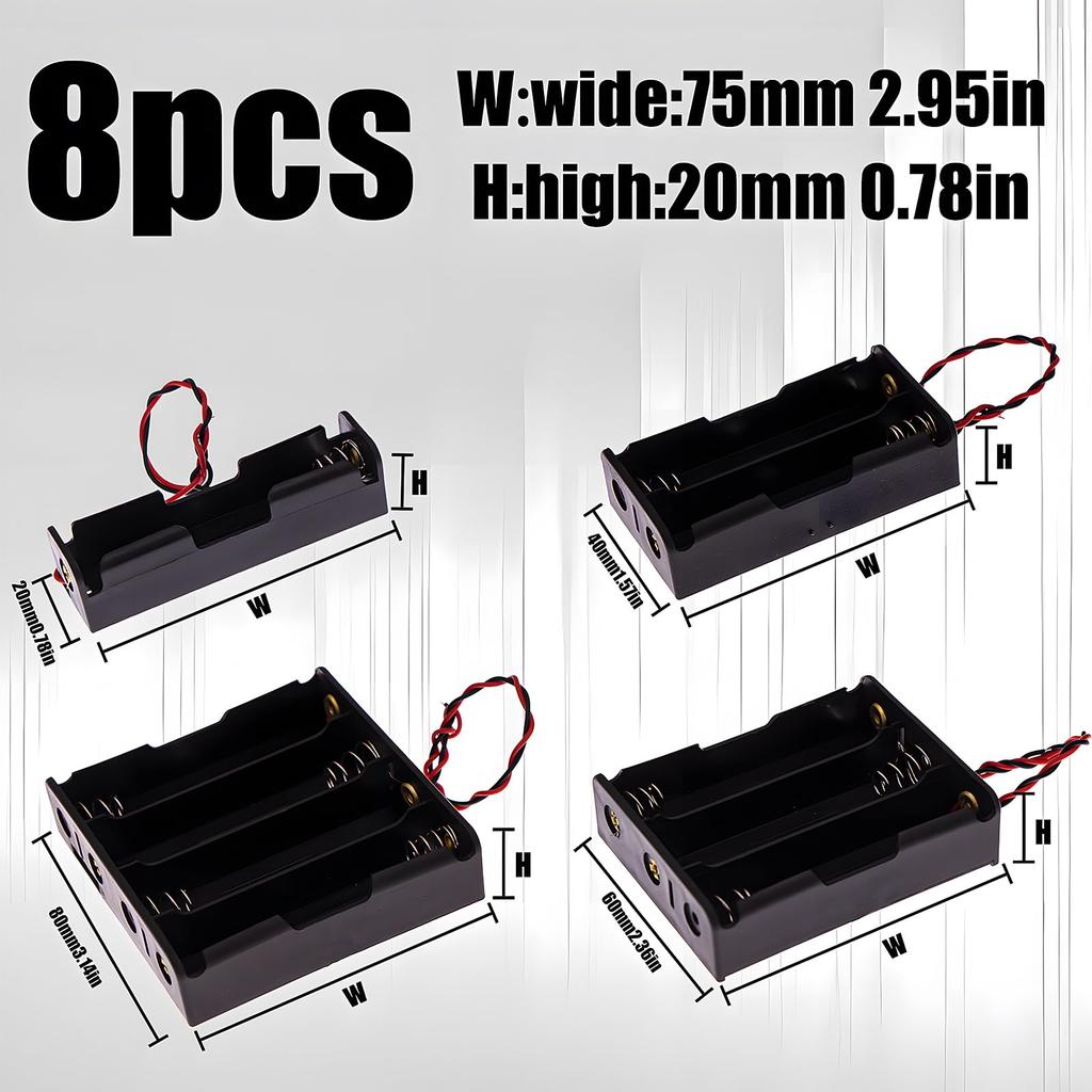 8Pcs AA Battery Holders with Wire Includes 1 AA Battery Holder 1.5V, 2 AA Battery Holder 3V, 3 AA Battery Holder 4.5V, 4 AA Batt