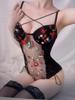 Spaghetti Strap Embroidered See-Through Lingerie with Open Crotch