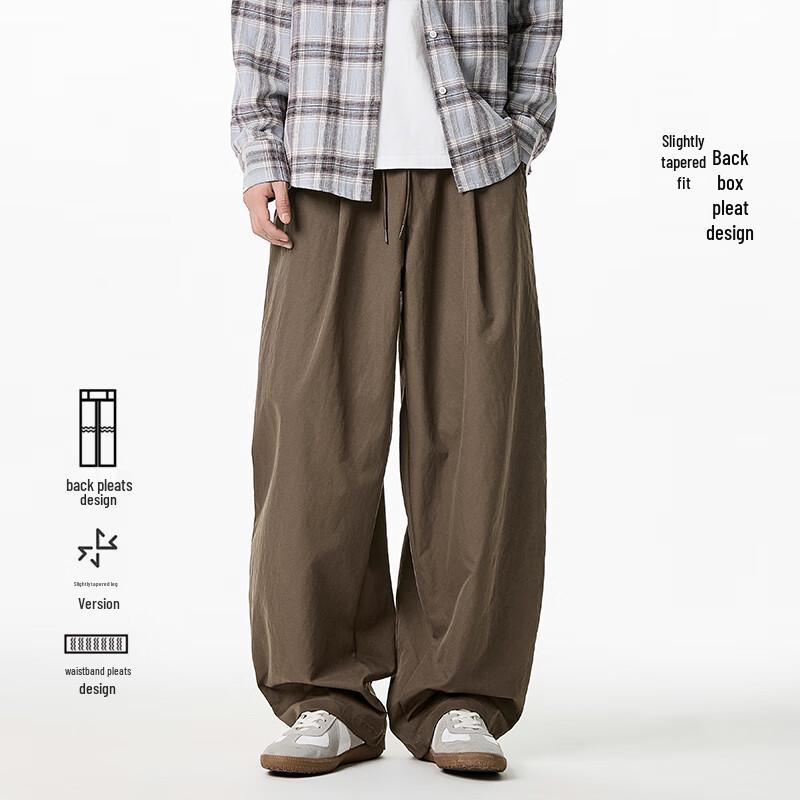 VUUG Men's Pleated Japanese Style Wide-Leg Cargo Pants