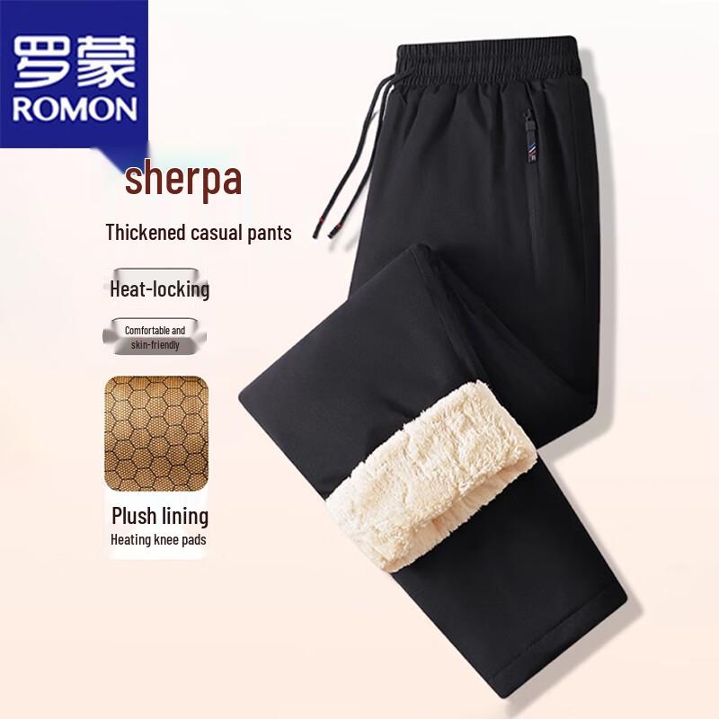 ROMON Men's Autumn/Winter Plush Lined Loose Straight-Leg Casual Pants