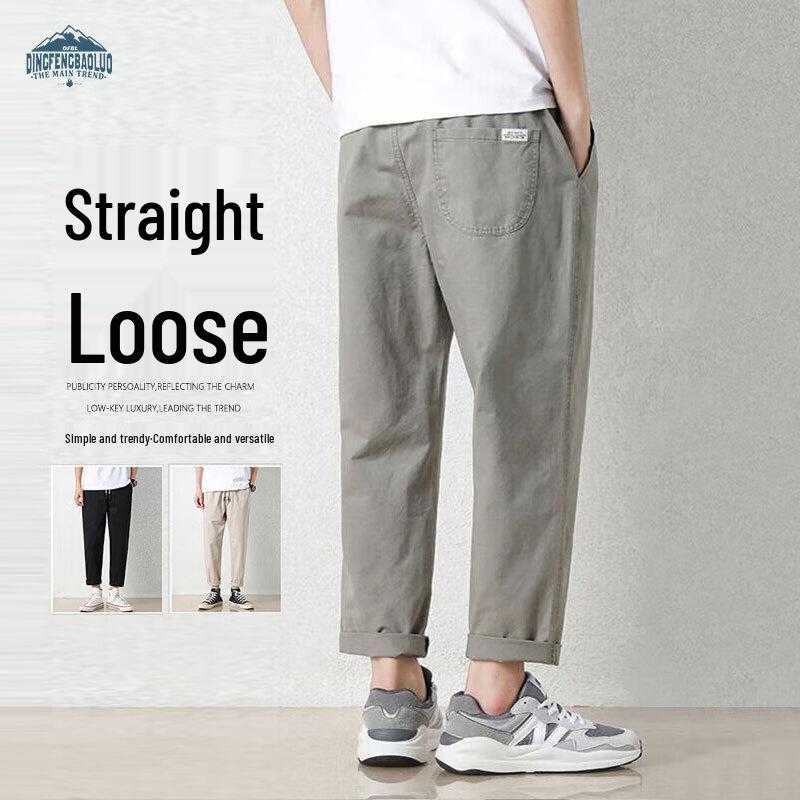 Dingfengbaoluo Men's Straight-Leg Cropped Casual Pants