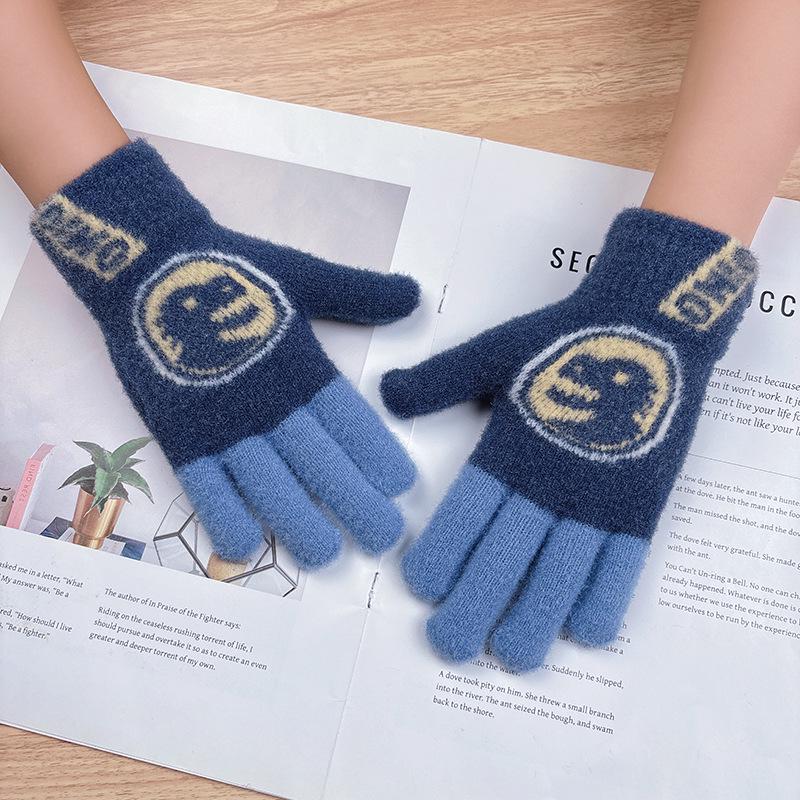Kids' Cool Winter Knitted Gloves - Boys' Stylish Five-Finger Cold-Proof Design for Small & Medium-Sized Children