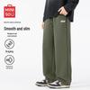 MINISO Men's Winter Fleece-Lined Layered Letter Print Straight-Leg Casual Pants